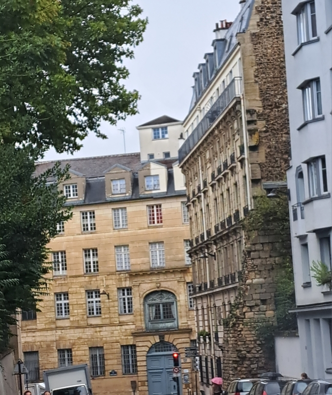 Rue Descartes, une plaque rappelle la porte Bobet qui permettait de traverser l’enceinte de Philippe Auguste, destinée à protéger Paris en l’absence du roi parti faire la croisade. L’ennemi redouté, ce sont….les Anglais! Un pan de muraille a été conservé entre les immeubles. Il donne une idée de ce qu’était cette formidable ceinture. Nous sommes rue Clovis: Rome va succomber aux assauts successifs des Barbares, ces gens dont le langage est incompréhensible et les mœurs brutales. Parmi eux, les Francs au 4e siècle: leur roi, Clovis, assied son pouvoir par la guerre et en se convertissant au christianisme, le royaume franc devient chrétien. Une femme a beaucoup contribué à cette conversion: Geneviève.