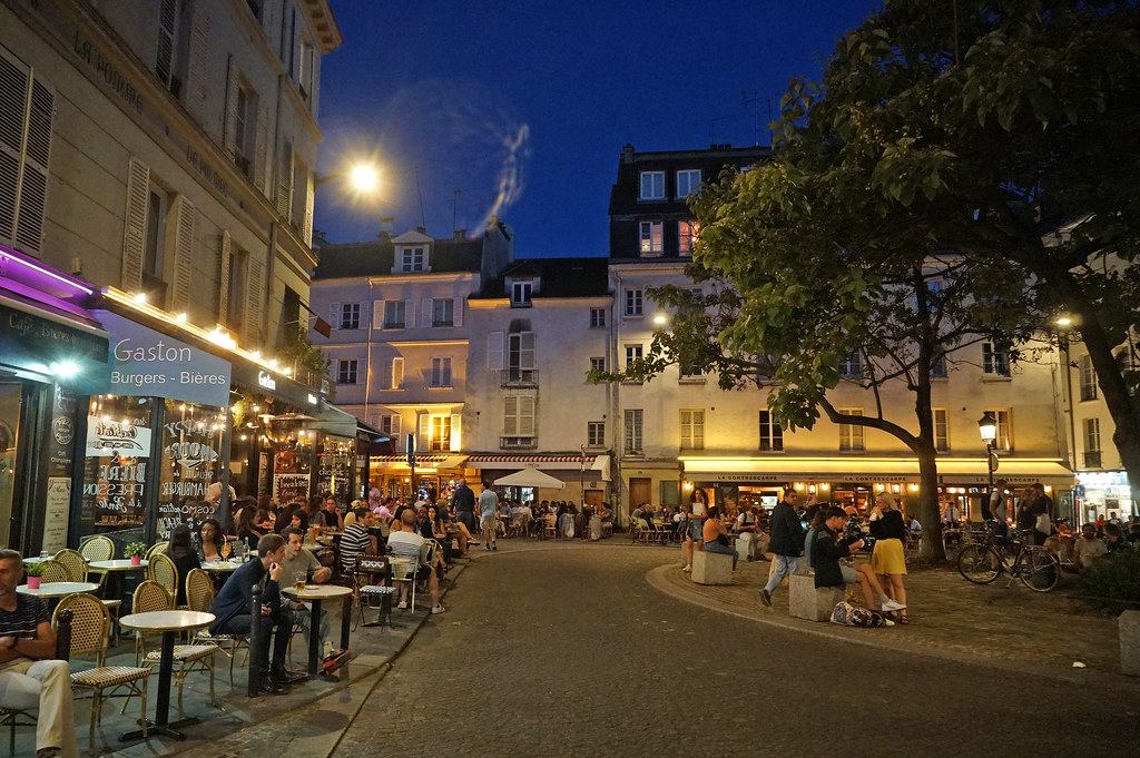 Après avoir rendu hommage à Hemingway, rue du Cardinal Lemoine, où il écrivit son livre « Paris est une fête », nous débouchons place de la Contrescarpe, déserte en ce matin pluvieux, mais bondée le soir. Un peu d’histoire rappelle l’importance des cafés étudiants et leur vie nocturne tapageuse.