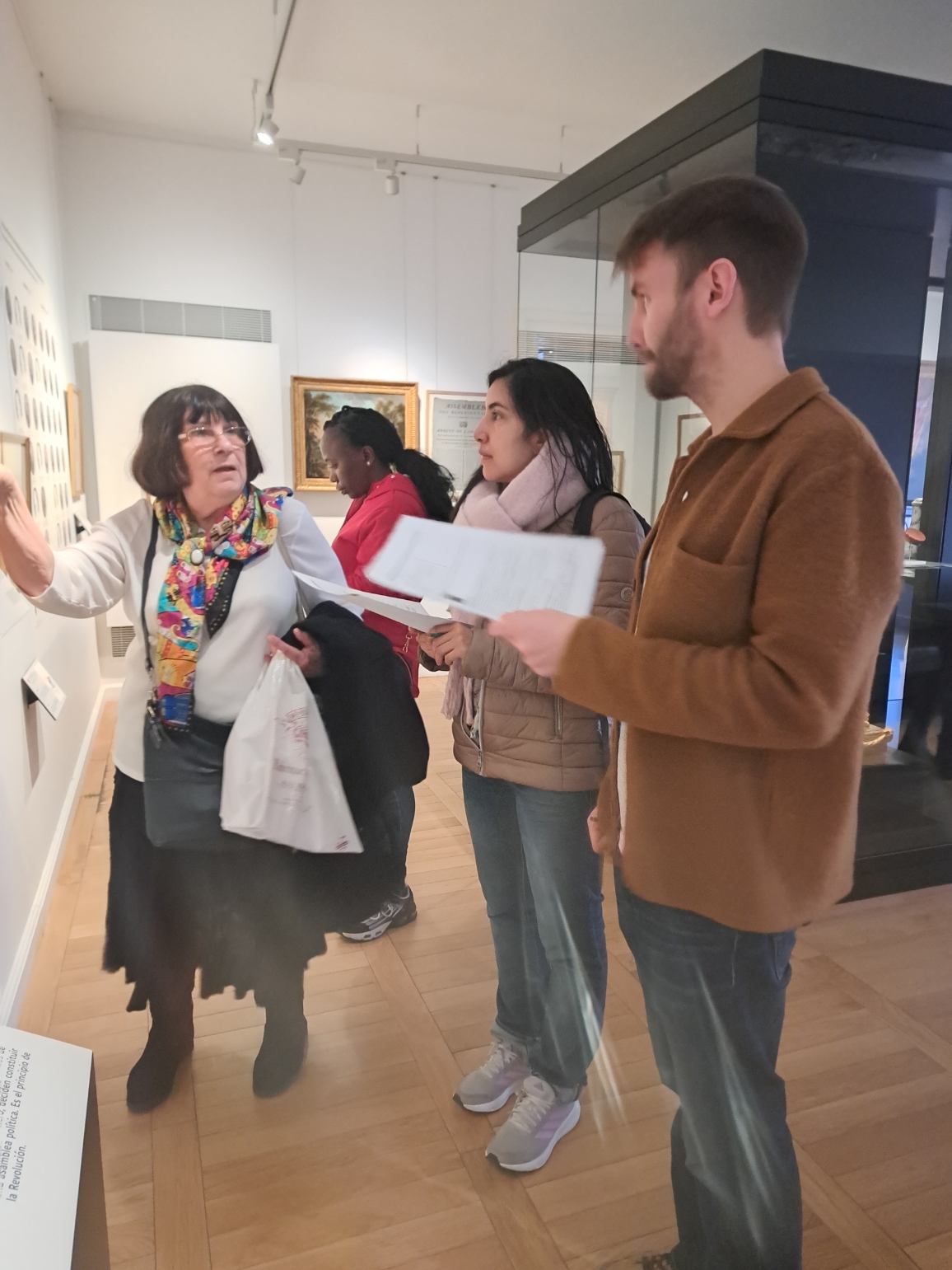 Ce samedi de la mi-novembre, 15 étudiants et 5 animatrices se retrouvent au métro St Paul, pour participer à cette sortie innovante. Afin d'éviter le temps incertain de cette période, nous avions choisi le Musée Carnavalet, pour un parcours ludique et instructif dans les salles consacrées à la Révolution de 1789. Chacun est muni d'un crayon et d'une feuille de route avec questionnaire. Les oeuvres devant lesquelles s'arrêter figurent sur chacune des 3 pages sous forme de petites photos.