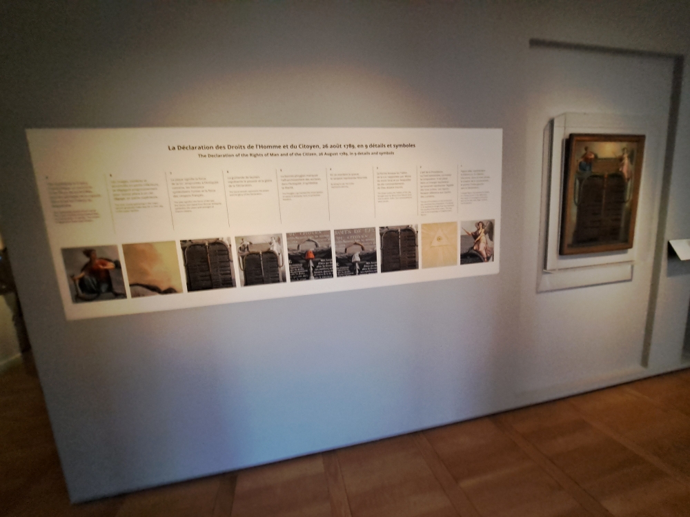 - la Déclaration des Droits de l'Homme et du Citoyen avec tous ses symboles iconograpiques, explicités par les panneaux voisins.
