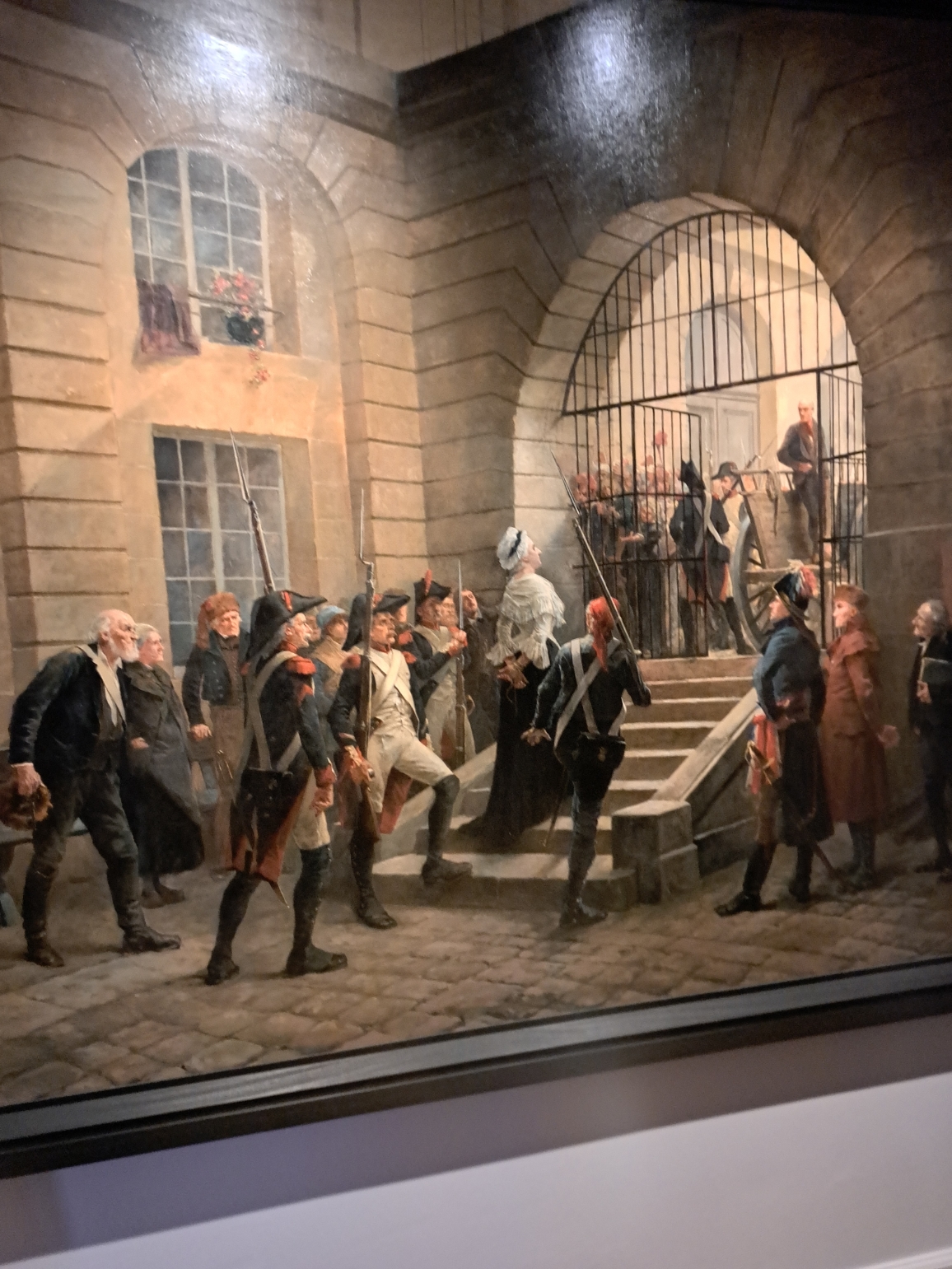 - un tableau montre Marie-Antoinette quittant le Temple pour aller en charrette vers l'échafaud