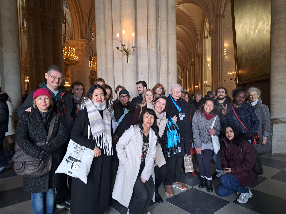 Ce samedi 6 décembre, tous les inscrits étaient présents au métro Cité et (presque) à l’heure, pour cette visite très attendue de la cathédrale Notre-Dame de Paris. Equipés des audiophones indispensables pour les visites de groupe, nous écoutons Jean-Pierre, fin connaisseur de ce lieu, exposer la philosophie générale de ce monument.