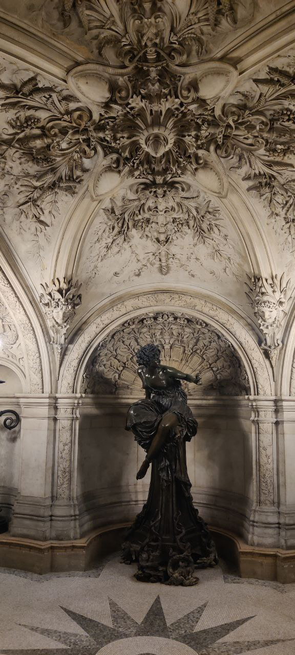 Les entractes sont longs à cause des changements de décors. Garnier propose encore d’évoluer dans un monde de rêve, un verre de champagne à la main. Voir et être vu ! Les hommes ont ce privilège jusqu’à ce que la reine d’Espagne Isabel II brise le tabou et s’avance dans le Grand Foyer !