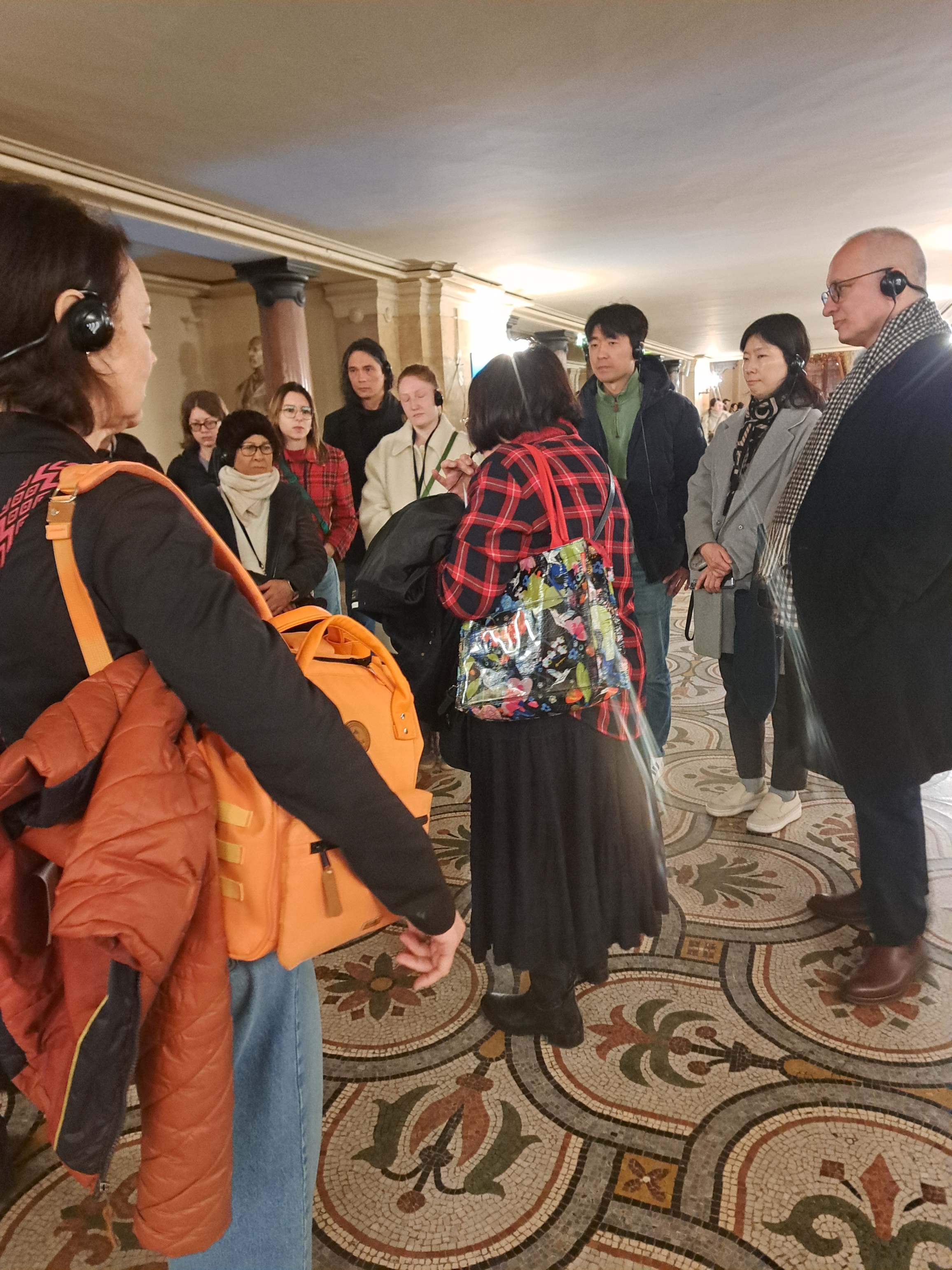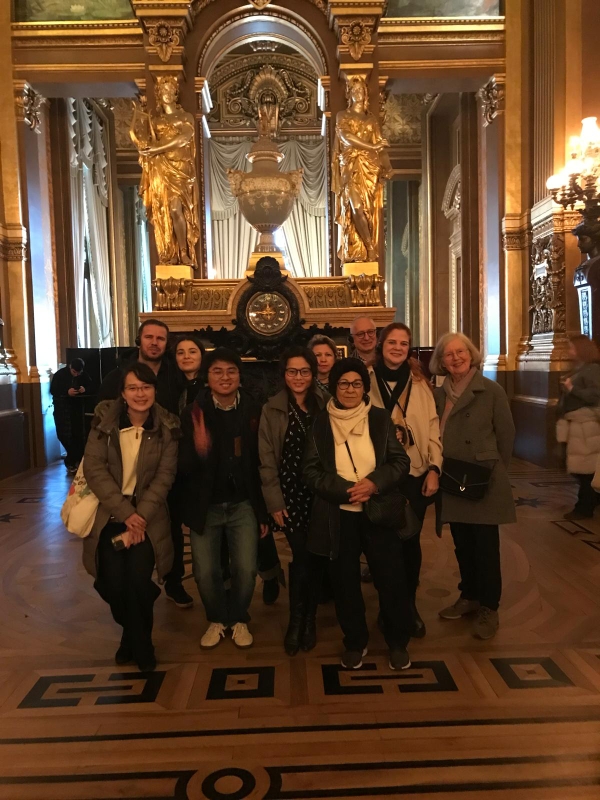 Ce samedi matin de nombreux touristes se pressent devant la grille du Pavillon de l’Empereur, qui n’ouvre qu’à 10h. Le groupe de l’ARC (26 personnes) a du mal à se retrouver et à aller jusqu’au guichet des audiophones. Enfin équipés, nous sommes prêts à écouter l’exposé de Marie-Claire, bénévole de l'ARC, experte de l’Opéra.