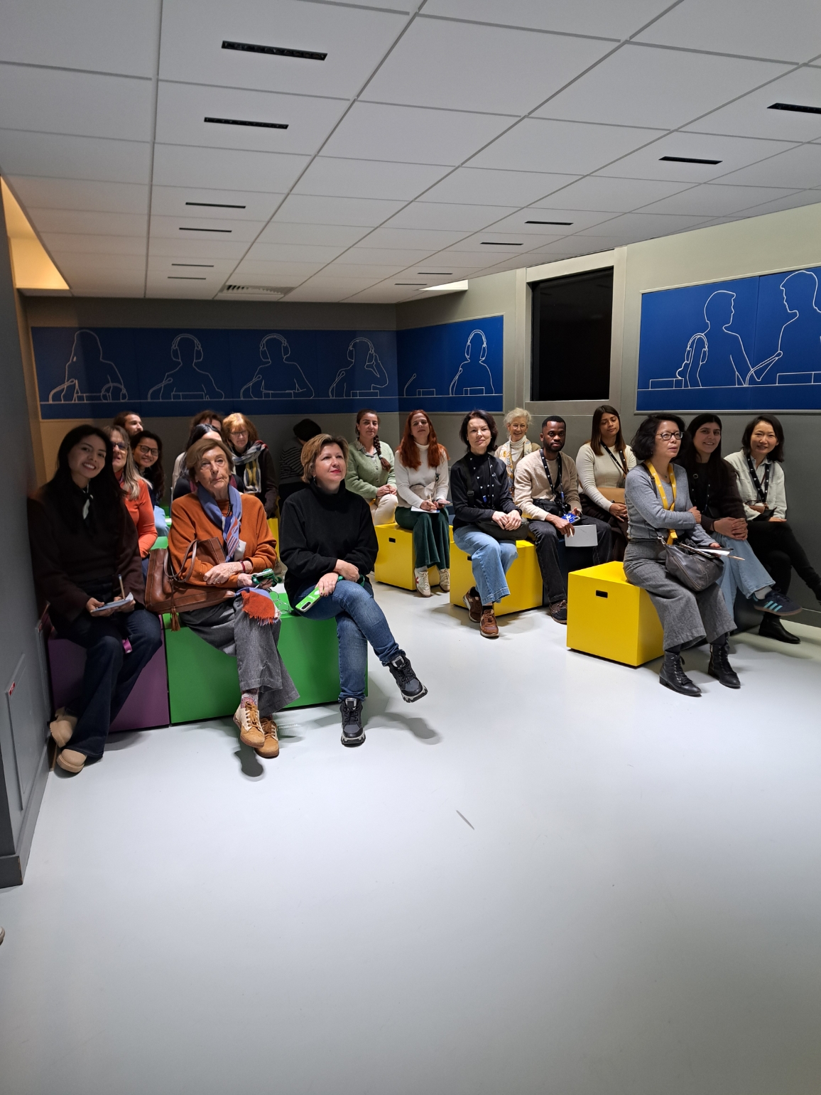 Les groupes sont invités dans la salle n°1 pour écouter sur un mur d’images une introduction succincte sur le Parlement européen :