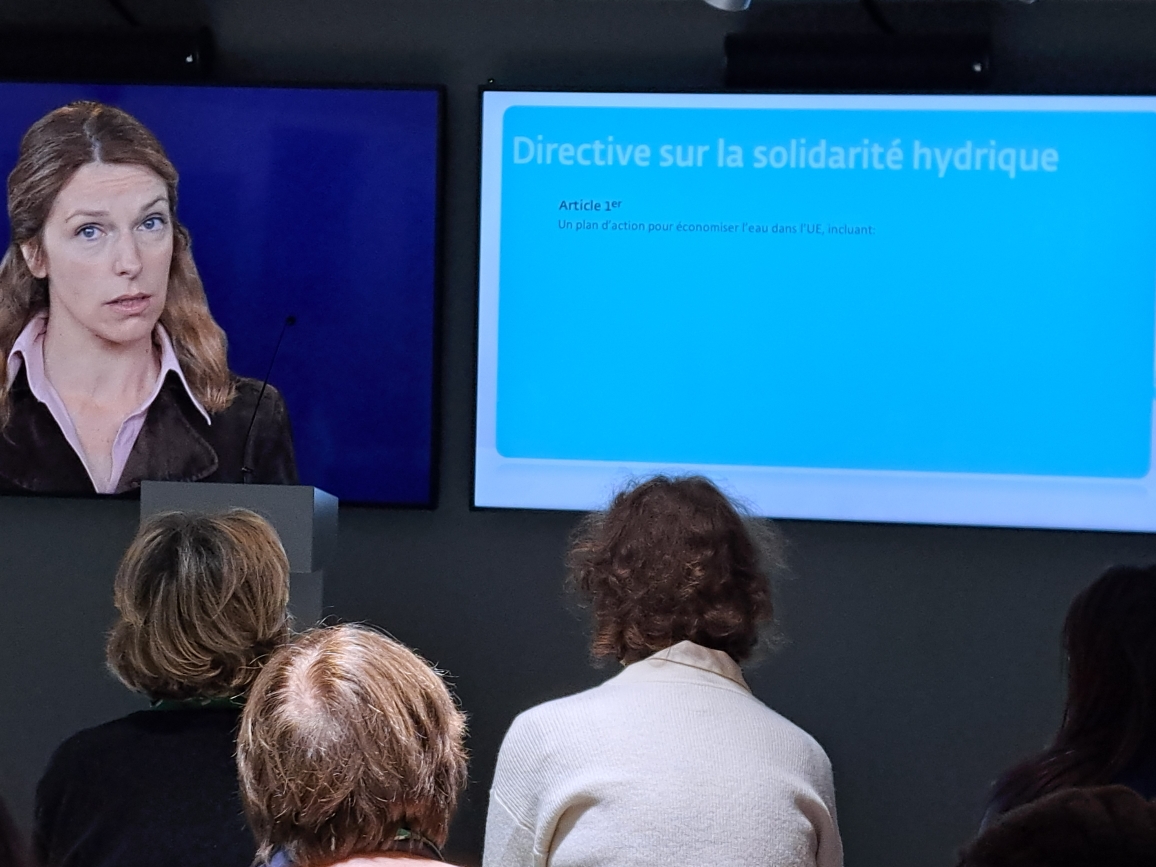 Nous allons dans la salle n°3, immense salle de commissions parlementaires et dotée de tables et bancs multicolores, de nombreux écrans intégrés aux murs pour chercher les informations, se documenter sur l’eau et sur les puces sous-cutanées.