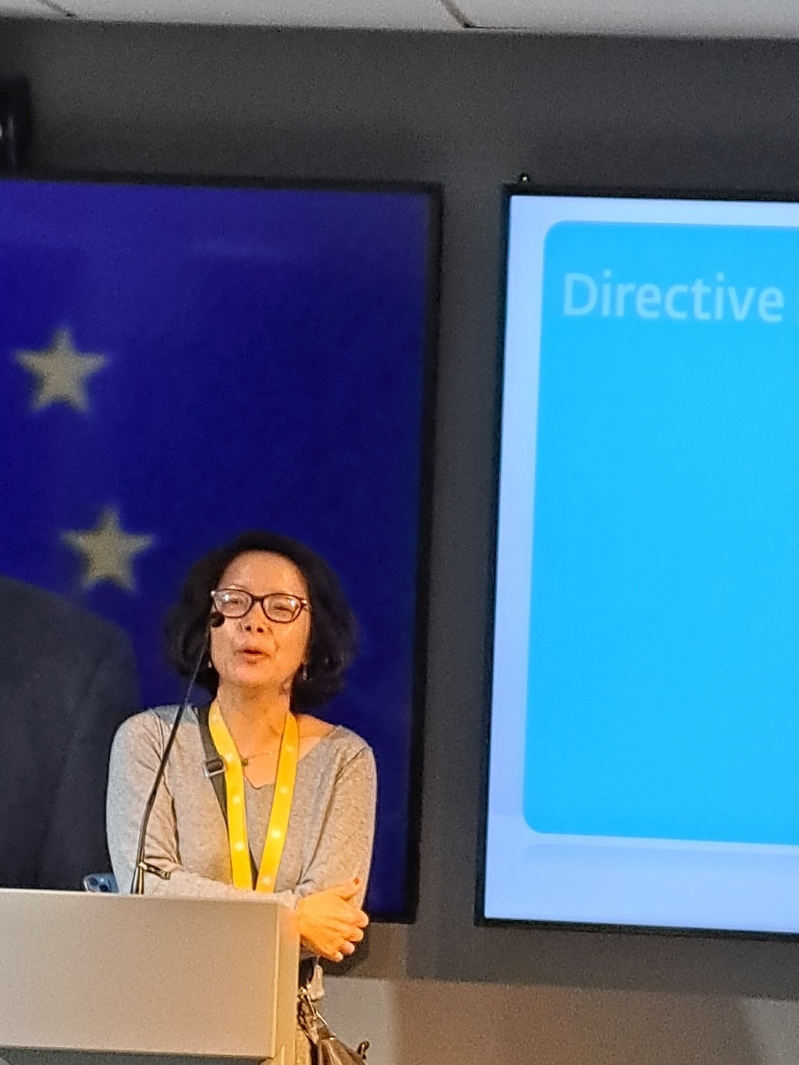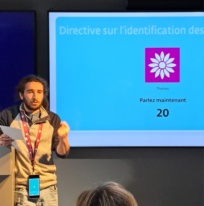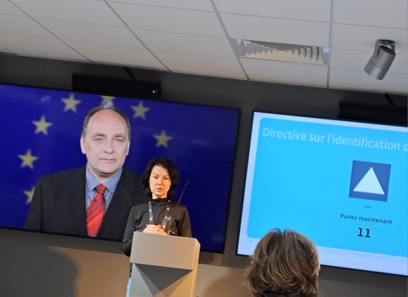 On nous amène dans la salle n° 2 censée représenter l’hémicycle du Parlement de Strasbourg. Les sièges arborent les couleurs des groupes politiques. Un intervenant sur écran - le Président du Parlement européen - nous salue :