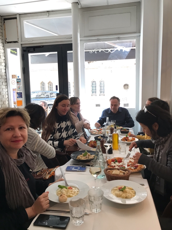 Catherine emmène quelques étudiant(e)s dans une pizzeria sympathique.