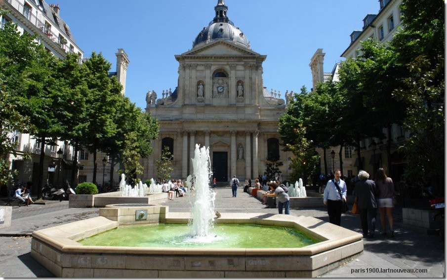 Sous le Panthéon et la rue Soufflot, le forum gallo-romain rappelle la naissance de la ville, même si nous n’en voyons pas les traces. Nous passons devant La Sorbonne, premier collège de France qui se soucie d’abriter et de nourrir les jeunes étudiants désargentés,une vingtaine au début du 13e siècle. Elle devient une très grande université jusqu’à aujourd’hui.