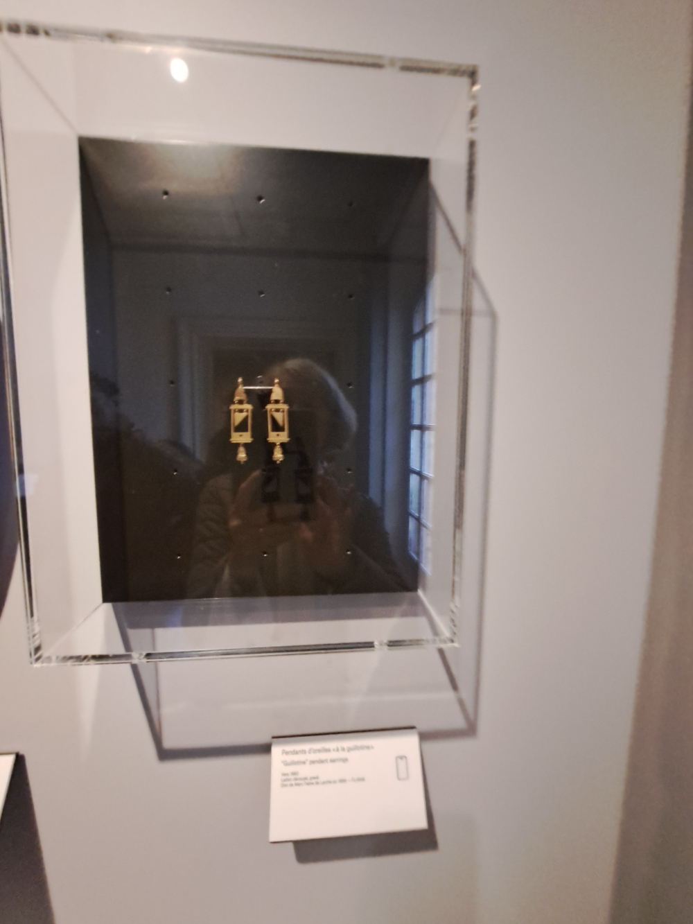 - le portrait de Guillotin créateur de la guillotine et les pendants d'oreilles représentant la lame et les têtes du roi et de la reine,