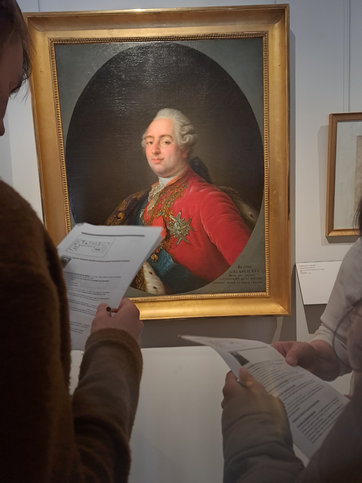 Ce samedi de la mi-novembre, 15 étudiants et 5 animatrices se retrouvent au métro St Paul, pour participer à cette sortie innovante. Afin d'éviter le temps incertain de cette période, nous avions choisi le Musée Carnavalet, pour un parcours ludique et instructif dans les salles consacrées à la Révolution de 1789. Chacun est muni d'un crayon et d'une feuille de route avec questionnaire. Les oeuvres devant lesquelles s'arrêter figurent sur chacune des 3 pages sous forme de petites photos.