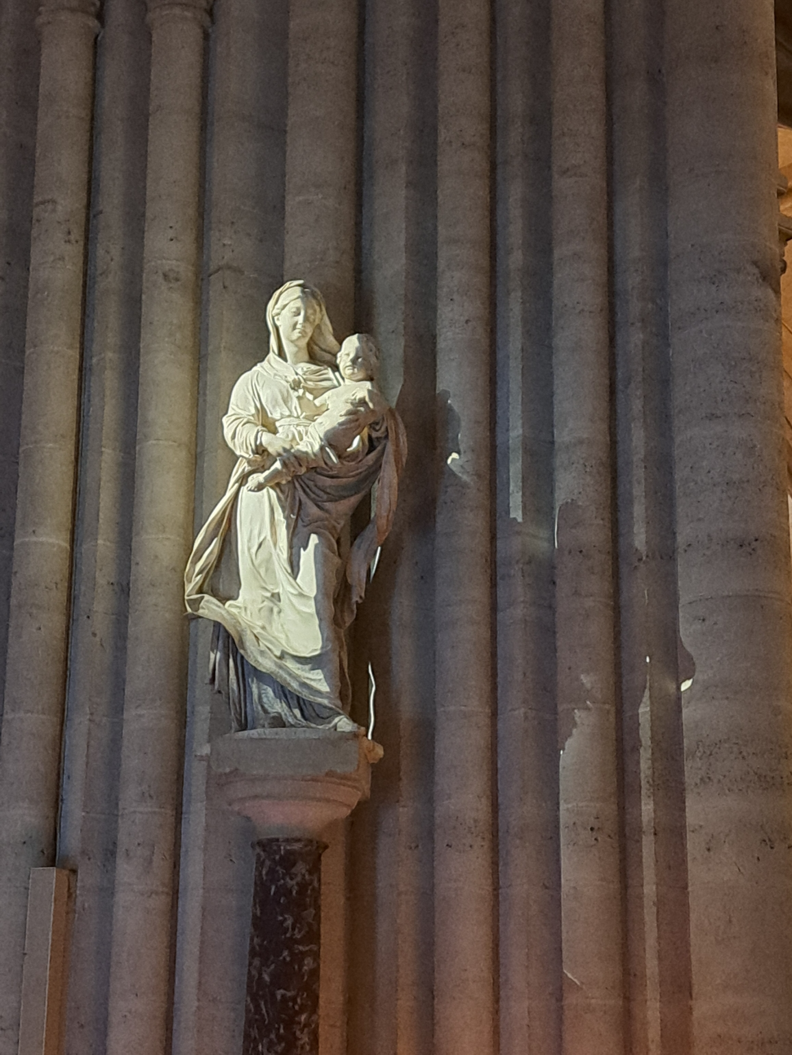 Le décor du chœur de la cathédrale nous plonge dans le XVIIIème siècle. Le choeur fut profondément transformé par la réalisation du ‘’Vœu de Louis XIII’’. Ce roi, le 10 février 1638, met le royaume de France sous la protection spéciale de la Vierge Marie. La statue de La Vierge à l’Enfant (XIVème siècle) consacre le nom de Notre-Dame de Paris. Elle est liée à l’épisode de la conversion de Claudel au moment du Magnificat des vêpres de Noël 1886.
