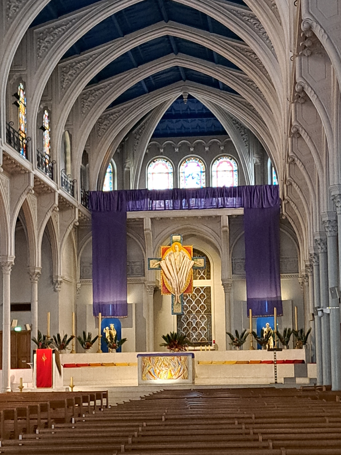La balade s’achève devant l’église St Pierre de Chaillot, dont la façade sculptée et l’intérieur sont en béton. Cette église figure parmi les œuvres d’art exceptionnelles.