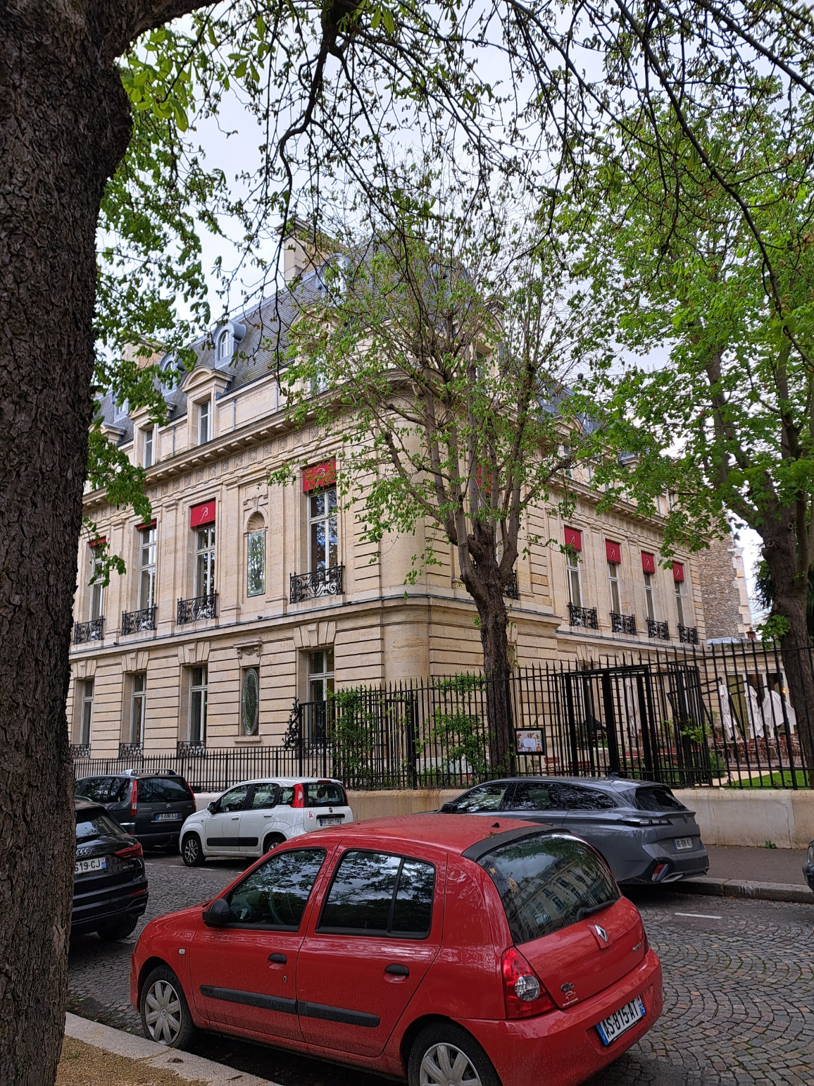 On arrive au Musée Galliera en passant par la Place Rochambeau - ami de La Fayette. Au milieu des fleurs, la magnifique façade de style italien attire les photographes … Au sous-sol se trouve le Musée de la Mode exposant de nombreux costumes du 18ème siècle au 21ème siècle.